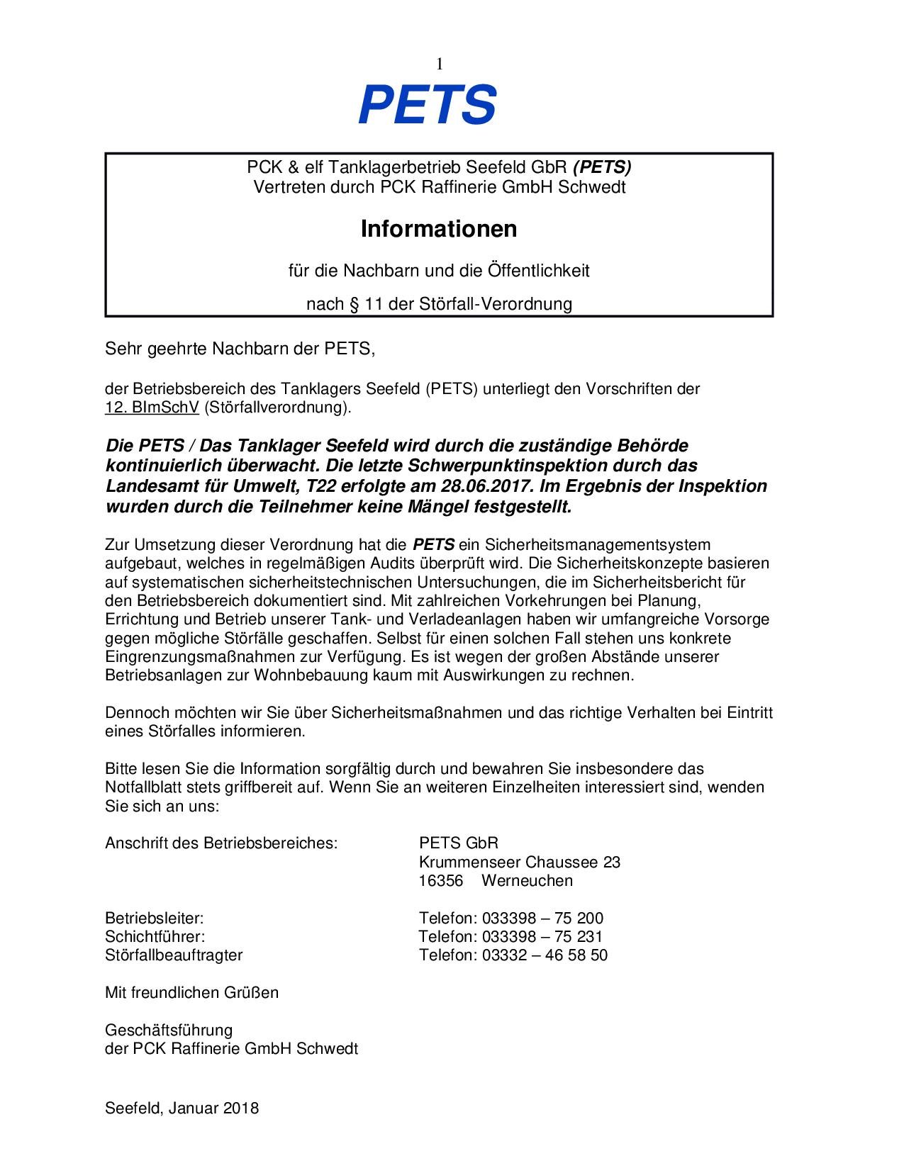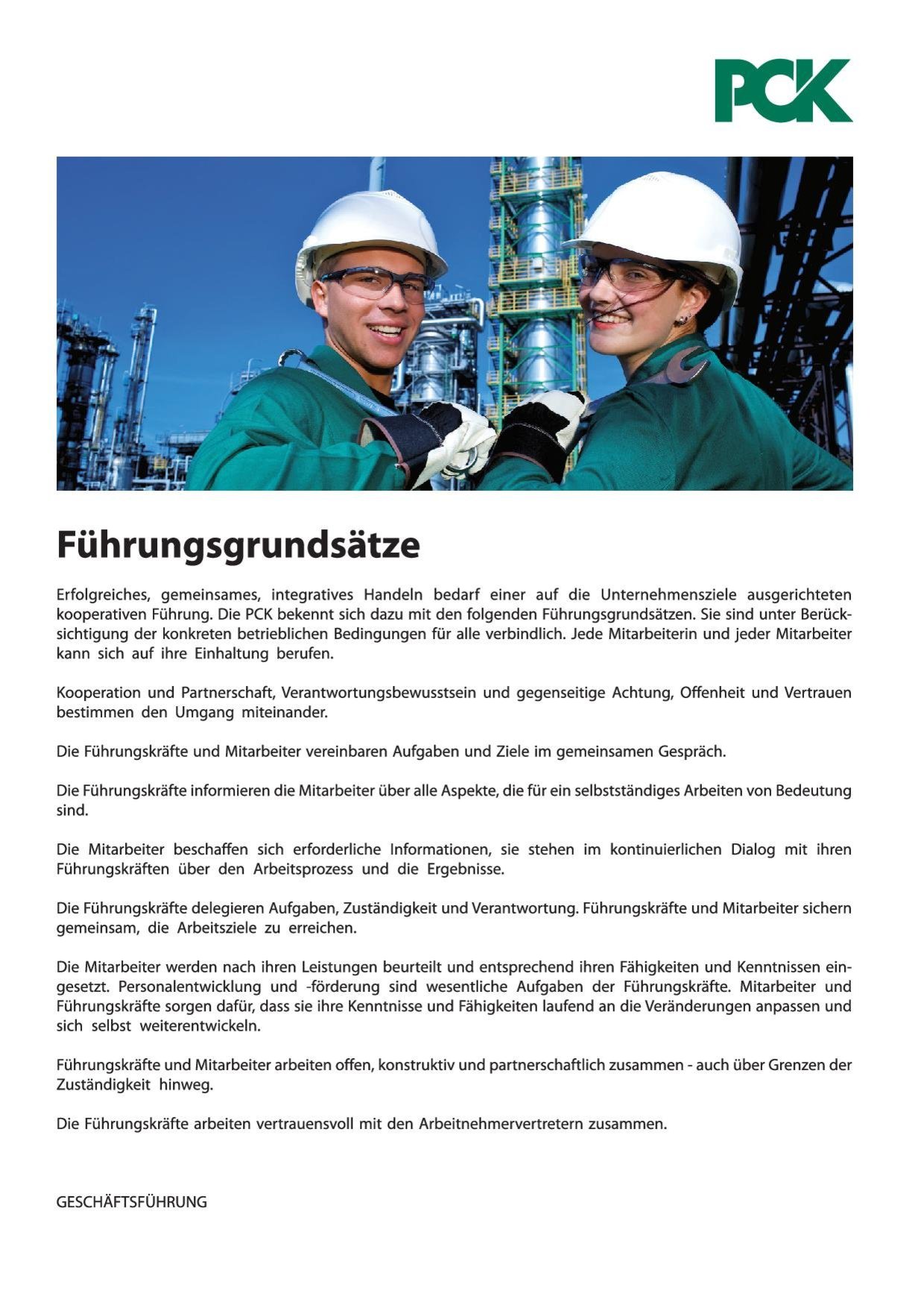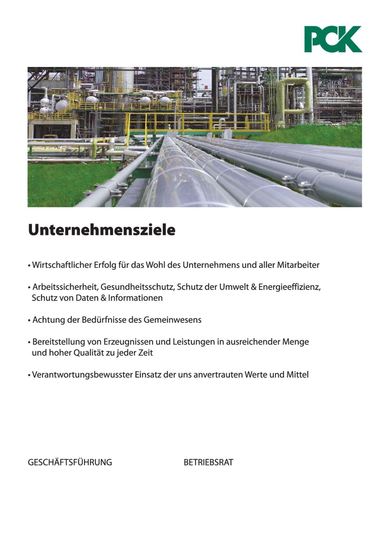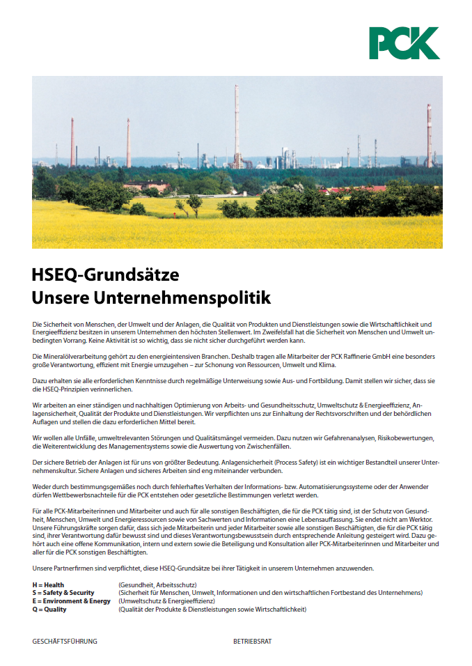 - Wir fühlen uns für die Sicherheit aller PCK-Mitarbeiter, unserer Partnerfirmen und Nachbarn verantwortlich.