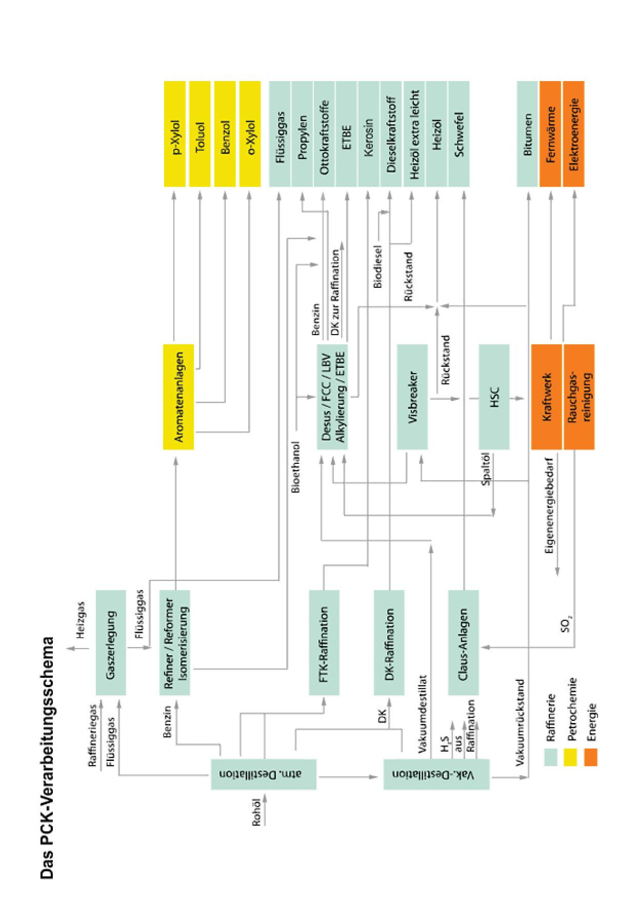 PCK hat eine Verarbeitungskapazität von jährlich 12 Millionen Tonnen Rohöl zu
